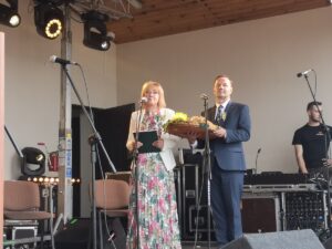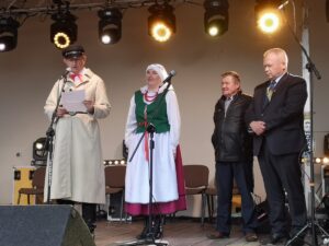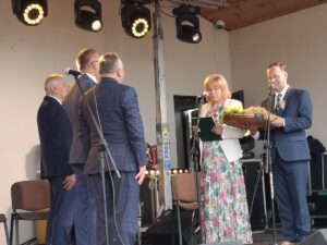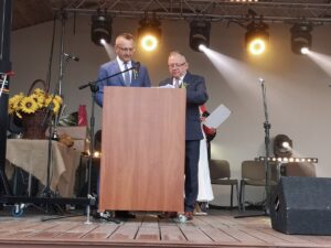 Do uczestników dożynek zwrócił się starosta powiatu sandomierskiego Marcin Piwnik.