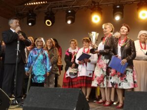 Małgorzata Kalinowska z Koła Gospodyń Wiejskich Łoniowianki, które przygotowało wieniec, nie kryje radości.