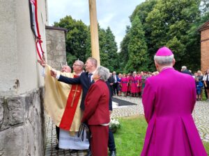 Na uroczystość przybyli także mieszkańcy z całego regionu, między innymi artysta ludowy Jan Puk z Trześnia: