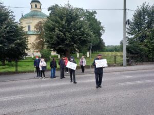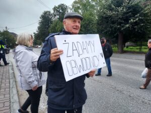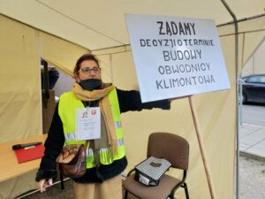 Anna Nadgrodkiewicz od dwudziestu lat zabiega o budowę obwodnicy. Dziś w czasie protestu poinformowała o planach zarządu województwa:
