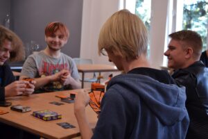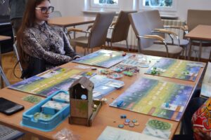 Oprócz niezobowiązujących rozgrywek w games roomie uczestnicy wydarzenia mogli także wziąć udział w turnieju w grę planszową “Osadnicy z Catanu”. Rywalizacja poprzedzona była grą pokazową oraz dokładnym wyjaśnieniem jej zasad przez członków “Arcanum”. Nowi gracze, którzy z Catanem zetknęli się po raz pierwszy mogli rozegrać między sobą kilka gier próbnych tak, aby i oni mieli równe szanse z tymi bardziej doświadczonymi. W grach eliminacyjnych zostały wyłonione cztery osoby, które w finale zmierzyły się ze zwycięzcami eliminacji przeprowadzonych podczas wcześniejszych spotkań z cyklu “Wyloguj się do gry…”. Ostateczne starcie było niezwykle emocjonujące, a walka o zwycięstwo toczyła się do ostatniej chwili. “Arcanowym Mistrzem Catana 2021” ostatecznie okazała się Monika. Nagrodami dla zwycięzców były gry planszowe, które – tak jak i możliwość organizacji wszystkich wydarzeń – ufundowane zostały dzięki dofinansowaniu ze środków programu „Działaj Lokalnie” Polsko-Amerykańskiej Fundacji Wolności realizowanego przez Akademię Rozwoju Filantropii w Polsce oraz Fundację Aktywizacji i Rozwoju.