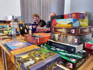 Już od samego progu Staszowskiego Ośrodka Kultury na przybyłych na wydarzenie czekał games room z ponad 130 rozmaitymi grami planszowymi. Wśród nich znalazły się tytuły dla każdego! Wokół stołów przy wspólnej rozgrywce zgromadziły się osoby w niemal każdym przedziale wiekowym.Nie zabrakło najmłodszych, jak i też starszych. Przyszli także rodzice z dziećmi, którzy chcieli pokazać swoim pociechom interesujący sposób na spędzanie wolnego czasu. Pojawił się także Burmistrz Miasta i Gminy Leszek Kopeć, który zainteresowany grami planszowymi sam zdecydował się na krótką rozgrywkę w jeden tytuł.