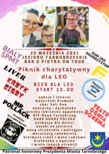 Sobotni Piknik dla Leosia rozpocznie się o godzinie 13.00 Biegiem dla Leo. Miejscem wydarzenia jest Bar u Piotra on Tour nad Jeziorem Tarnobrzeskim. Za miejsce parkingowe nad Jeziorem Tarnobrzeskim nie trzeba będzie płacić.
