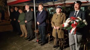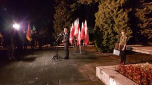 Na początku uroczystości wybrzmiał hymn państwowy. Potem głos zabrał prezydent Tarnobrzega. Dariusz Bożek mówił o tym, że wojna zaczęła się od słów, następnie były gesty i czyny.