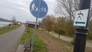 Nad zalewem w Koprzywnicy ustawiono tablicę z dwiema wyznaczonymi trasami nordic walking.