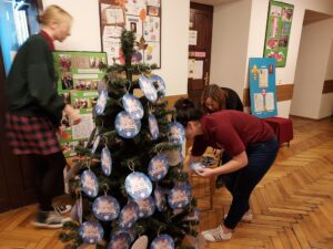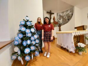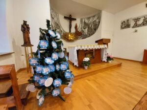 W szkolnej kaplicy znajduje się symboliczna choinka, pod którą należy składać dary dla niemowląt: