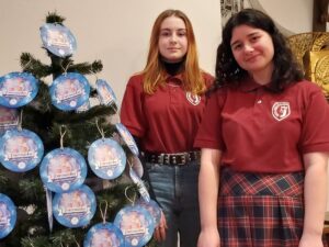 Choinka, pod którą składać można dary dla dzieci, znajduje się obok ołtarza z relikwiami świętej królowej Jadwigi – patronki szkoły: