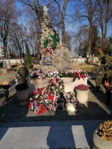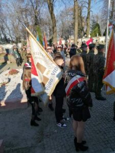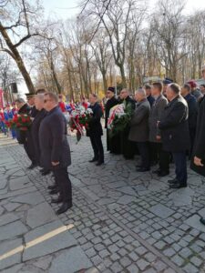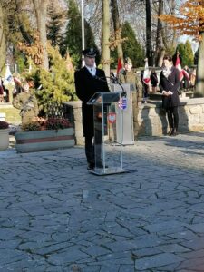 Po wygloszeniu okolicznościowych przemówien nastąpiło złożenie kwiatow i zapalenie zniczy w miejscach pamięci znajdujących się na cmentarzu a następnie pod pomnikiem westerplatczyka – plutonowego Władysława Barana pod budynkiem starostwa powiatowego.