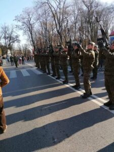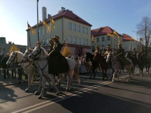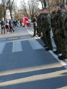 Pieśni patriotyczne w wykonaniu młodzieży, parada motocyklistów, woskowa grochówka a także siedemset rogali świętomarcińskich od starosty Marcina Piwnika i burmistrza Marcina Marca wypełniły spotkanie pod starostwem. – Jak mówi starosta Marcin Piwnik, było radośnie i patriotycznie: