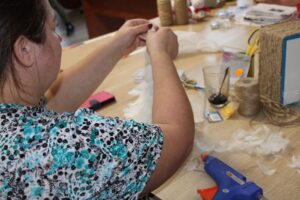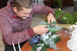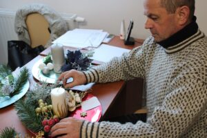 W pracowni rękodzieła Zakładu Aktywności Zawodowej w Sandomierzu powstają świąteczne stroiki. Mówi kierownik zakładu Magdalena Król-Juda: