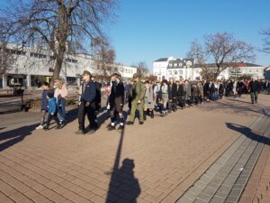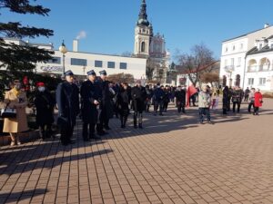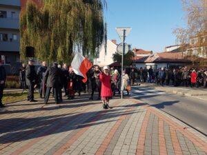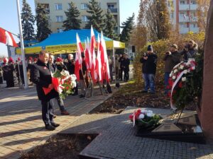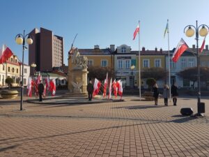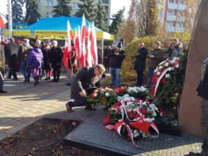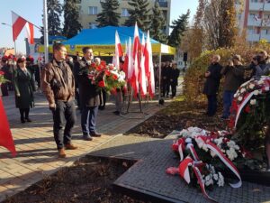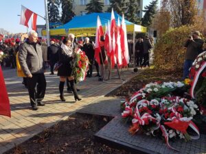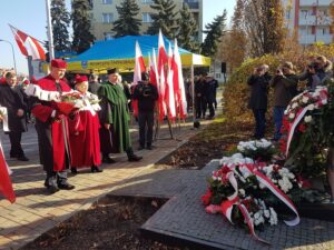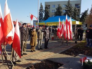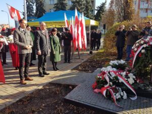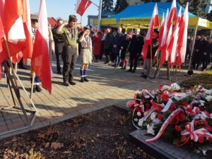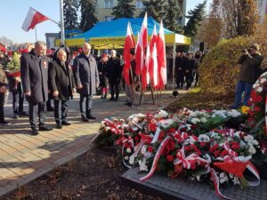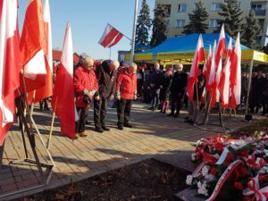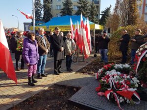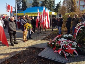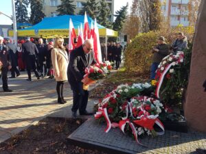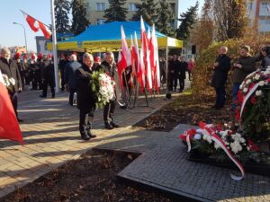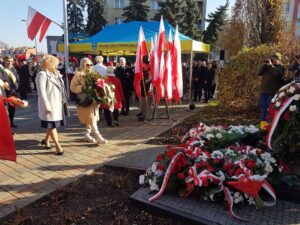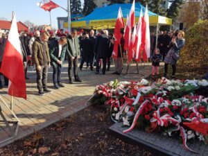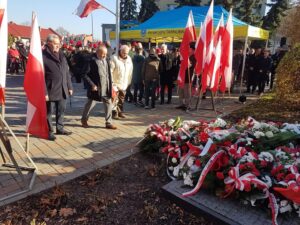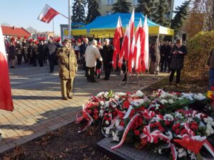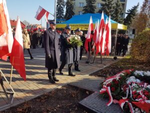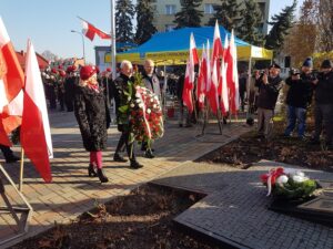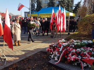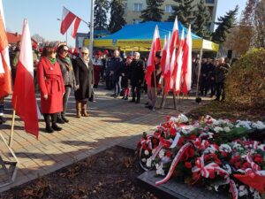 Po przemówieniu prezydenta delegacje złożyły przed pomnikiem Józefa Piłsudskiego wieńce i wiązanki kwiatów. Na koniec uroczystości prezydent Dariusz Bożek rozdał mieszkańcom śpiewniki patriotyczne.