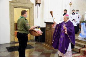 Harcerze w czasie uroczystej mszy świętej w kościele św. Michała Archanioła przekazali je biskupowi Krzysztofowi Nitkiewiczowi, władzom miasta i powiatu a także innym harcerzom.