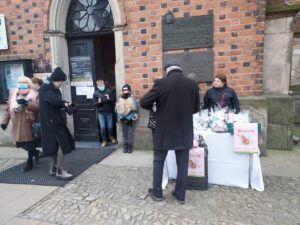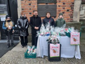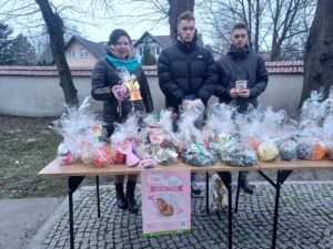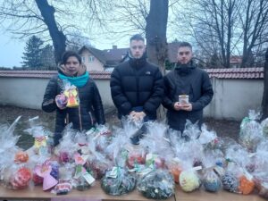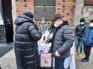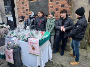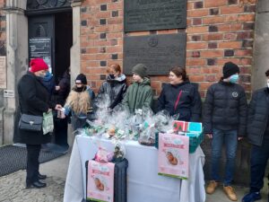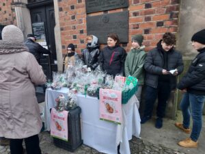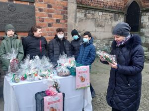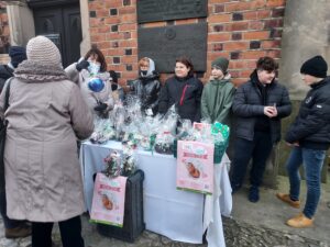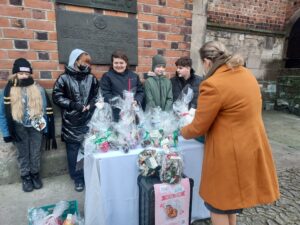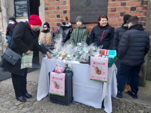 Pod katedrą oraz pod kościołem św. Pawła uczniowie sprzedawali przygotowane przez siebie ozdoby. Mówi Wiktor Wolak – uczeń siódmej klasy Katolickiej Szkoły Podstawowej: