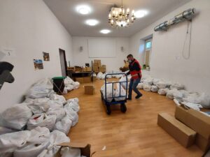 Paczki podzielono na pięć kategorii w zależności od liczby osób tworzących rodzinę. Największe paczki ważyły około 40 kilogramów.