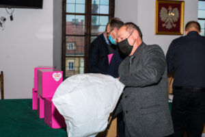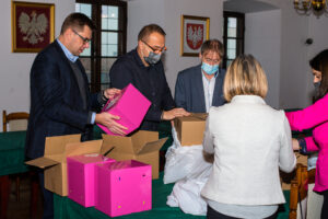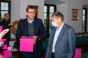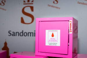 Dwadzieścia różowych skrzyneczek przekazanych przez burmistrza Sandomierza zawiśnie w szkolnych toaletach. O wyposażenie wszystkich skrzyneczek zadbała Kinga Radoń z Apteki Nova. Mówi sekretarz miasta Aneta Przyłucka: