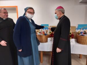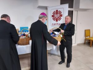 Świąteczne kosze z żywnością otrzymało od biskupa sandomierskiego Krzysztofa Nitkiewicza siedem placówek dla bezdomnych i ubogich. Placówki te stale współpracują z Caritas Diecezji Sandomierskiej.