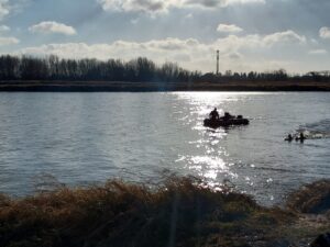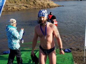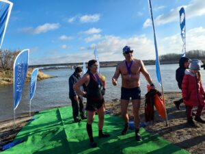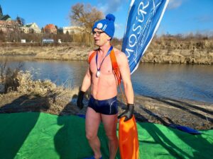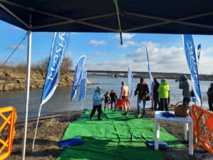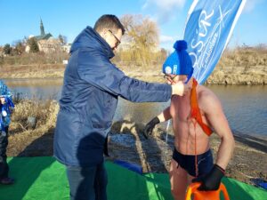 Pięćdziesiąt osób przepłynęło Wisłę w Sandomierzu podczas VI Zimowej Przeprawy Wisły Wpław.