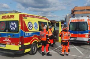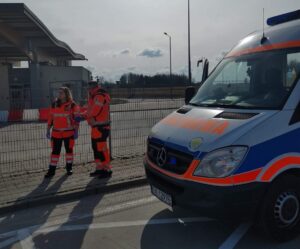 Sandomierscy ratownicy trzeci dzień działają w punkcie recepcyjnym zlokalizowanym przy przejściu granicznym w Butomierzu.