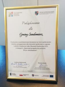 Wśród nominowanych i nagrodzonych znalazły się podmioty z Sandomierza. W kategorii 'Biznes prospołeczny – średnie i duże przedsiębiorstwa’ nagrodę główną zdobyła grupa PBI z Sandomierza. W kategorii 'Podmiot Ekonomii Społecznej’ nominacje uzyskały: Spółdzielnia Socjalna 'Salve Regina’ oraz Zakład Aktywności Zawodowej w Sandomierzu. W kategorii 'Samorząd prospołeczny – powyżej 20 tys. mieszkańców’ nominację do tytułu uzyskał samorząd Sandomierza.
