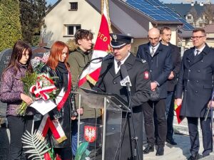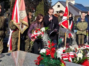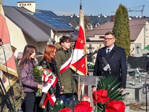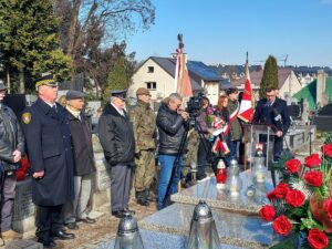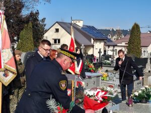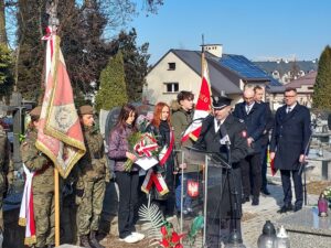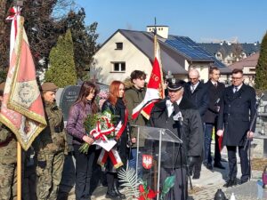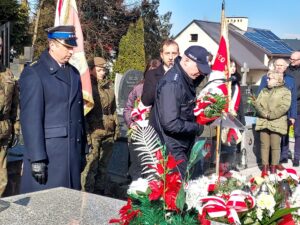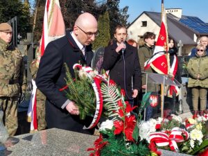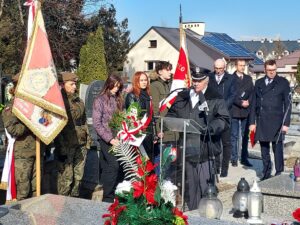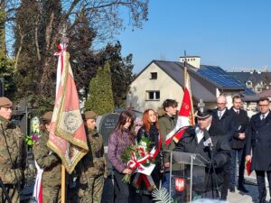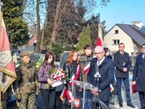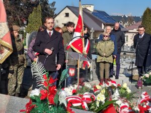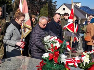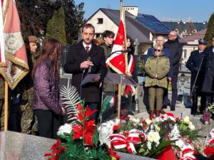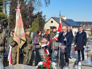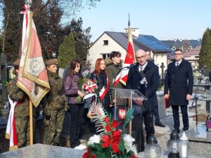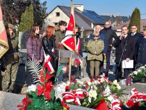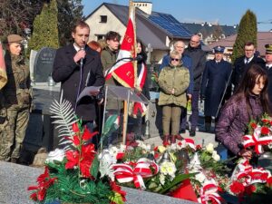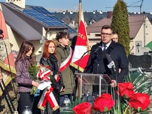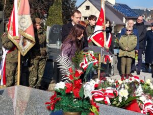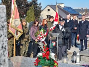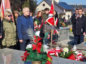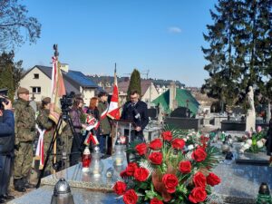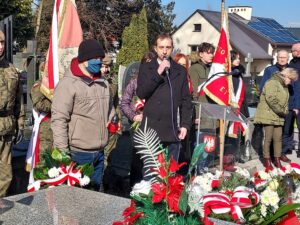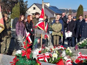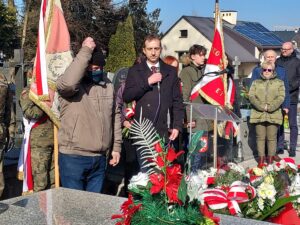 Współorganizator uroczystości Robert Piwko z kieleckiej Delegatury IPN jak co roku i tym razem oddał cześć Żołnierzom Niezłomnym przy symbolicznej mogile Kruka: