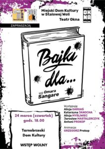 W Tarnobrzeskim Domu Kultury trwają Dni Teatru. W ramach obchodów święta, które przypada 27 marca, już w najbliższy czwartek, o godzinie 18.00, na deskach TDK zaprezentowany zostanie spektakl młodzieżowego Teatru OKNA z Miejskiego Domu Kultury w Stalowej Woli pod tytułem „Bajki dla…”, na podstawie tekstów Omara Sangare.