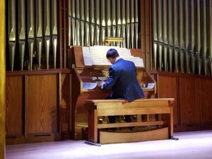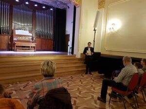 Jako pierwszy na organach zagrał Mariusz Ryś – muzykolog, dyrektor artystyczny Festiwalu Muzyki Organowej i Kameralnej w Tarnobrzegu i Sandomierskich Wieczorów Organowych.