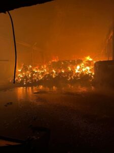 Przed północą strażacy z Tarnobrzega otrzymali sygnał o ogniu w hali przy ulicy Mechanicznej 7. Jak powiedział nam dyżurny operacyjny Komendy Miejskiej Państwowej Straży Pożarnej aspirant sztabowy Rafał Bogoń w budynku składowane były tony materiałów do wypełniania pościeli. Poszewki bawełniane w sprasowanych balotach.