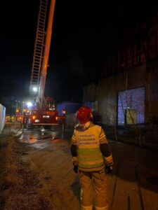 Działania strażaków utrudniało wysokie prawdopodobieństwo zawalenia się dachu obiektu. W akcji gaśniczej wykorzystano między innymi podnośnik z JRG Mielec oraz Cysternę z JRG Stalowa Wola. Mówi aspirant sztabowy Rafał Bogoń.