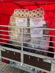 Do Przemyśla, pojechały dwa samochody z przyczepami, wioząc 11 palet na których znalazły się m.in. artykuły medyczne, higieniczne, a także artykuły spożywcze. W Przemyślu artykuły zostaną odebrane i przez Lwów trafią do Czernihowa.