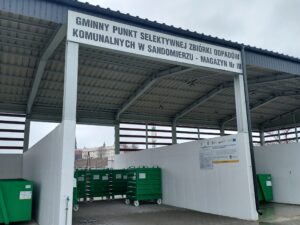 Dwie wiaty do segregacji odpadów podzielone na boksy i wyposażone w kontenery to element nowoczesnego Punktu Selektywnej Zbiórki Odpadów Komunalnych, z którego mogą już korzystać mieszkańcy Sandomierza. Powstał też nowoczesny budynek do prowadzenia zajęć edukacyjnych o tematyce proekologicznej. Jest waga do ważenia odpadów, nowe kontenery oraz ładowarki.