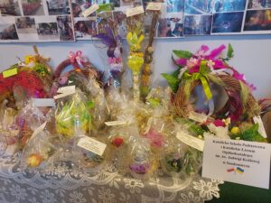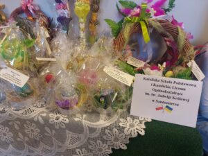 Uczniowie i nauczyciele sandomierskich szkół i przedszkoli, rodzice, emeryci oraz mieszkańcy szkolnej bursy przygotowali wielkanocne ozdoby na charytatywny kiermasz wielkanocny, z którego dochód przekazany zostanie na pomoc uchodźcom z Ukrainy przebywającym na terenie powiatu sandomierskiego.