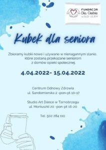 „Kubki dla seniorów”, to hasło inicjatywy tarnobrzeskiej Fundacji „Dla Ciebie” imienia Olgi Lilien. Członkowie fundacji ogłosili zbiórkę nowych lub używanych kubków w idealnym stanie. Jeszcze przed świętami mają one trafić do Domu Pomocy Społecznej w Tarnobrzegu oraz ościennych placówek o podobnej działalności.