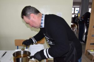 W lepieniu pierogów czynny udział brał także dyrektor szkoły Jan Wiatr: