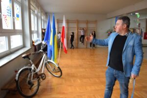 Jan Wiatr przypomina, że to kolejna inicjatywa na rzecz uchodźców z Ukrainy organizowana w szkole. W placówce zrodził się bowiem pomysł zbierania rowerów: