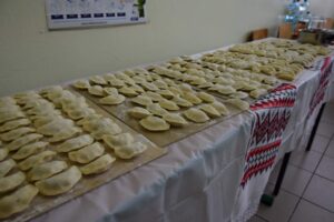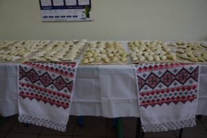 Pierogi lepiło dziesięć Ukrainek, których dzieci chodzą do szkoły w Zawierzbiu. Wspierała ich też Oksana Gotfryd, która mieszka w Ostrołęce w gminie Samborzec od 2013 roku. Jej dwójka dzieci uczęszcza do przedszkola i szkoły w Zawierzbiu:
