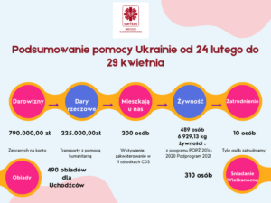 Ponad milion złotych wynosi wartość pomocy udzielonej za pośrednictwem Caritas Diecezji Sandomierskiej dla obywateli Ukrainy dotkniętych wojną. Na sumę tę składa się 790 tys. zł od darczyńców w związku ze zbiórkami oraz wartość darów rzeczowych przekazanych do Ukrainy w transportach z pomocą humanitarną – ponad 200 tys zł.