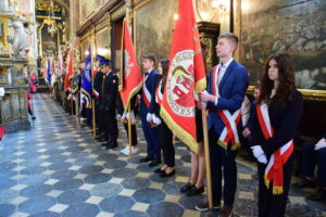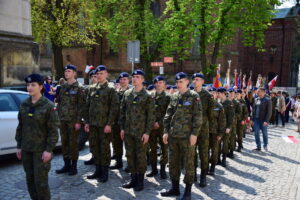 Po mszy dalsza część obchodów odbyła się przy ratuszu pod tablicą upamiętniającą mieszkańców Sandomierza poległych w bitwie warszawskiej. Tam delegacje władz, duchowieństwa, służb mundurowych i młodzieży złożyli kwiaty. Odmówiono też modlitwę za twórców Konstytucji 3 maja i za wszystkich, którzy oddali życie za niepodległość Polski.