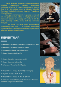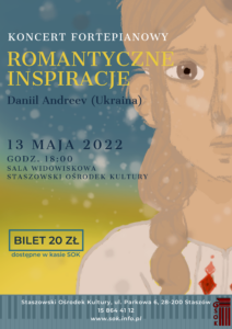 Staszowski Ośrodek Kultury zaprasza na koncert zatytułowany 'Romantyczne inspiracje”. Utwory głównych przedstawicieli romantyzmu w muzyce: L. Beethovena, F. Chopina, F. Mendelssohna, R. Schumanna, F. Liszta i R. Paganiniego wykona niezwykle utalentowany siedemnastoletni pianista – Daniil Andreev (Ukraina). To wielokrotny laureat konkursów ogólnoukraińskich i międzynarodowych (Grand Prix, I, II i III miejsce m.in. w Kijowie, Wiedniu, Ameryce, Mediolanie), laureat Nagrody Prezydenta Miasta Kijowa.