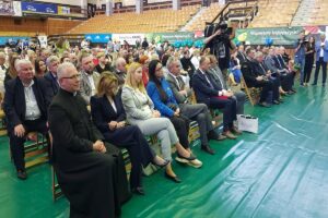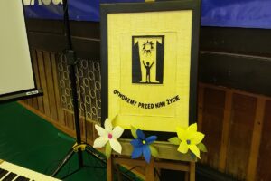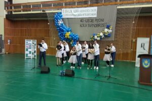 Msza święta w Kościele pod wezwaniem Chrystusa Króla rozpoczęła bogaty program obchodów jubileuszowych. Po nabożeństwie zebrani przeszli do hali Miejskiego Ośrodka Sportu i Rekreacji w Tarnobrzegu. Tam uczestnicy Warsztatów Terapii Zajęciowej oraz Ośrodka Rehabilitacyjno-Edukacyjno-Wychowawczego przywitali ich piosenką „Podaj rękę Ukrainie” na znak solidarności ze wschodnimi sąsiadami.