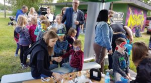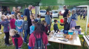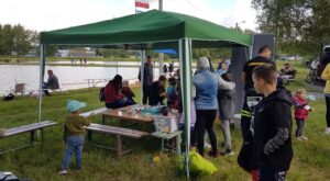 Młodzi uczestnicy zawodów wędkarskich zostali nagrodzeni. Każdy, kto brał udział w wydarzeniu mógł liczyć na poczęstunek z grilla.