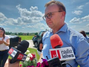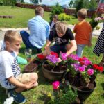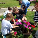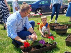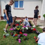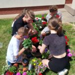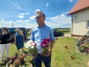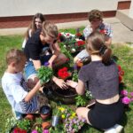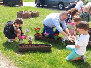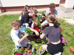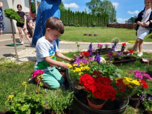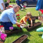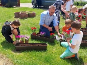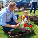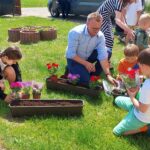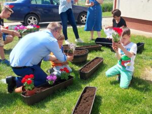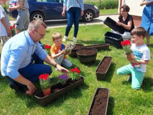 Kwiaty razem z dziećmi sadził starosta sandomierski Marcin Piwnik: