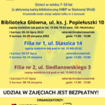 Od poniedziałku 20 czerwca Miejska Biblioteka Publiczna w Stalowej Woli rozpoczyna zapisy na bezpłatne wakacyjne zajęcia dla dzieci. W tym roku zostaną one przeprowadzone w Bibliotece Głównej, w Filii nr 1 i Filii nr 2. Na wszystkich turnusach wakacyjnych czeka na dzieci w sumie 124 miejsca. Każda fila będzie miała inny program, dlatego warto przed zapisaniem dziecka sprawdzić które propozycję będą najbardziej interesujące. Dla przykładu Filia n1 zaprasza na podróże po kontynentach. Mówi kierownik filii Mirosław Ofiara: