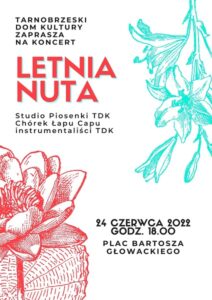 Koncert zatytułowany „Letnia nuta” odbędzie się w najbliższy piątek, 24 czerwca, o godzinie 18.00, na Placu Bartosza Głowackiego w Tarnobrzegu. Wykonawcy, to wokaliści z Chórku Łapu Capu i Studia Piosenki Tarnobrzeskiego Domu Kultury, których opiekunem jest Anna Pintal. Wystąpią również podopieczni Katarzyny Dereń i Mariana Zycha.