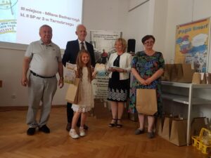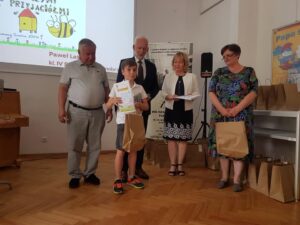 W pierwszej kategorii pierwszą nagrodę otrzymała Dominika Ciejka, zaś w drugiej – Witold Niezgoda. Zadaniem uczestników Powiatowego Konkursu Plastycznego „Pszczółka przyjacielem człowieka” było opracowanie plastycznego plakatu popularyzującego rolę pszczół w życiu człowieka lub potrzebę ich ochrony. Wpłynęło 121 prac. Konkurs organizowany był na dwóch poziomach. Poziom pierwszy – uczniowie klas I-IV szkół podstawowych z Tarnobrzega i powiatu tarnobrzeskiego o poziom II – uczniowie klas V-VIII szkół podstawowych z Tarnobrzega i powiatu tarnobrzeskiego.
