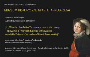 To będzie opowieść o twórcach Kolekcji Dzikowskiej. W najbliższy czwartek, 30 czerwca, o godzinie 17.30, w Muzeum Historycznym Miasta Tarnobrzega z siedzibą w Zamku Tarnowskich w Dzikowie,odbędzie się kolejne wydarzenie z cyklu „Czwartkowe Wieczory Zamkowe”. Wykład wygłosi Monika Chwałek-Oczkowska – tłumaczka pamiętników Walerii Tarnowskiej.