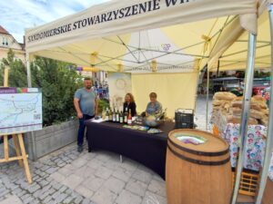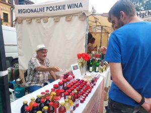 Na jarmarku nie zabrakło trunków produkowanych na Ziemi Sandomierskiej. Jak mówi Mateusz Paciura, jak zwykle budzą one zainteresowanie gości jarmarku: