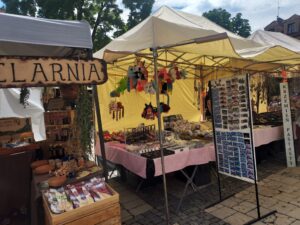 Dziś drugi dzień Jarmarku Jagiellońskiego w Sandomierzu. Na rynku Starego Miasta stoja kramy z unikalnym rękodziełem, sztuką ludową, produktami tradycyjnymi, rzemiosłem artystycznym, krzemieniem pasiastym, słodyczami, trunkami sandomierskimi, ziołami, przyprawami i pamiątkami sandomierskie.