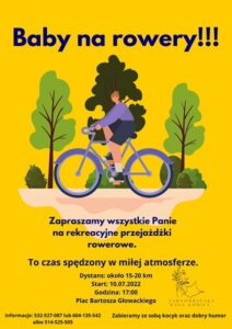 Na rekreacyjną przejażdżkę jednośladem zaprasza wszystkie zainteresowane panie Tarnobrzeska Rada Kobiet. Kolejną już wyprawę w ramach akcji „Baby na rowery!!!” zaplanowano w najbliższą niedzielę, 10 lipca. Start o godzinie 17.00 z Placu Bartosza Głowackiego w Tarnobrzegu.