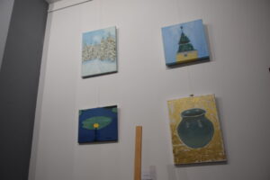 Ekspozycja jest pokłosiem pracy w minionym roku akademickim. Autorki prac to panie, które z własnej inicjatywy biorą udział w zajęciach, realizując swoje plastyczne pasje. Przy grupie dorosłych działa także grupa dzieci. Zwieńczeniem rocznych zajęć był plener malarski w zamkowym parku w Baranowie Sandomierskim, z którego pojedyncze prace zostały pokazane na prezentowanej wystawie.