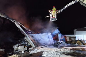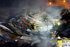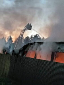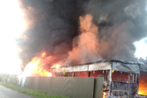 Ponad 60 strażaków gasiło pożar hali magazynowo-produkcyjnej zakładu produkującego wyroby z wikliny w  Rudniku nad Sanem.